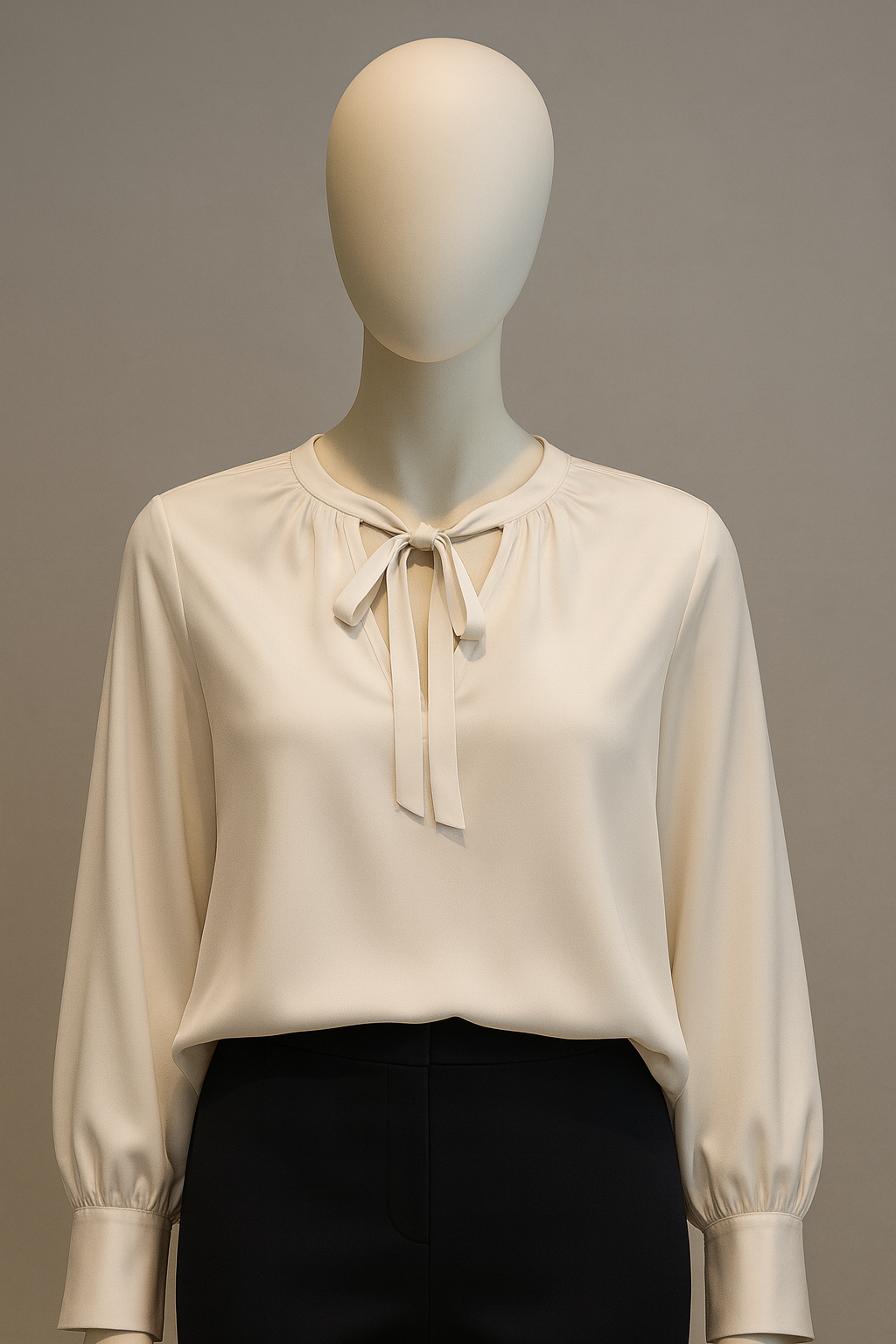 A refined satin blouse with a soft tie-neck detail and flowing sleeves - the perfect blend of sophistication and versatility.