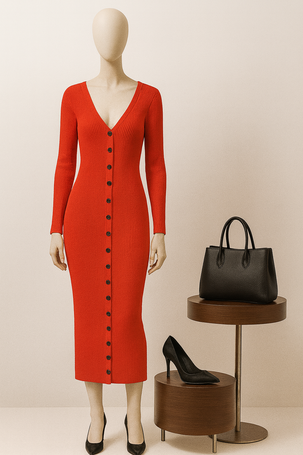 - Details: Black button-down closure, ribbed knit design
