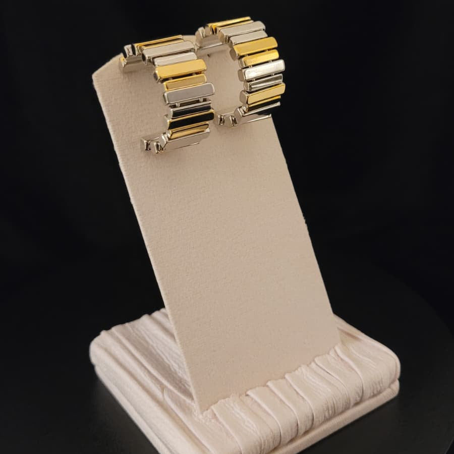 These premium quality hoops feature a bold, concave design meticulously crafted with alternating polished silver and matte gold-plated segments. A chic statement accessory that flawlessly combines modern geometry with timeless luxury.
